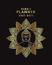 Weekly Planner 2021-2023: Sacred Buddha Agenda with To Do Lists, Vision Boards, Notes, Holidays | 3 Year Agenda, Diary, Calendar, Organizer | Golden Spiritual Mandala Print