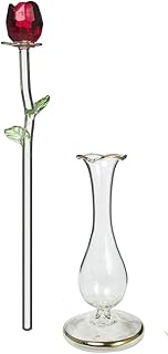 カットクリスタルレッドローズフラワー ガラス花瓶付き 高さ6~8インチ