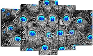 Derkymo 5ピース クジャクの羽 絵画 キャンバスプリント ティールキャンバス ウォールアート リビングルーム 寝室 装飾 動物 羽根 プーム アート 枠張り済み すぐに掛けられる 8インチ x 16インチ x 2インチ + 8インチ x 20インチ x 2インチ + 8インチ x 2インチ + 8インチ x 24インチ