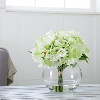 Home 50-138 ピュアガーデン アジサイ フローラルアレンジメント ガラス花瓶付き グリーン