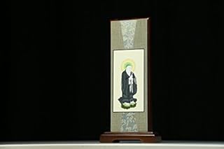 掛軸 親鸞上人 ■ 仏壇 仏像 仏具 ■ 浄土真宗 高田派 スタンド 掛け軸 脇掛 ■木製 小 本体:高さ20.5cm×幅9cm×奥行き3.5cm 掛け軸:高さ17.5cm×幅6cm
