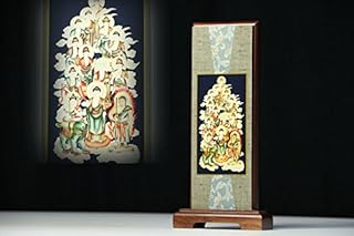 掛軸 両如来 ■ 仏壇 仏像 仏具 ■ 浄土真宗 高田派 スタンド 掛け軸 脇掛 ■木製 小 本体:高さ20.5cm×幅9cm×奥行き3.5cm 掛け軸:高さ17.5cm×幅6cm