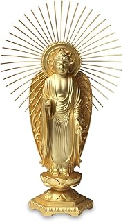 仏像 ■ 3.5寸 ■ 阿弥陀如来立像 蓮華座 丸台 白木 浄土真宗 本願寺派(西) 西本願寺 お西 ご本尊 ■ 仏具 ■ 大佛師【帆刈黌童】が監修 手彫り 仏壇用 御本尊 ■ 木彫り (高さ20.8cm×幅10.1cm×奥行き7.4cm)