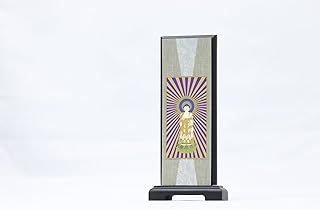 この商品について. 阿弥陀如来立像 浄土真宗 大谷派 御本尊. 木目が美しいスタンド型の掛軸となっております。. 本紙に描かれる繊細な絵像は和紙の縁取り、厳かな配色。. お仏壇に置くだけで簡単に設置できるタイプです。. 仏壇の上段中央に祀る本尊と両脇に祀る脇掛けとしてお祀りいただきます。. 上置型18号以上の仏壇や小型の床置型モダン仏壇に合う 仏具 阿弥陀如来立像 浄土真宗 高田派 スタンド 掛け軸 本尊 黒木製 小 本体:高さ20.5cm×幅9cm×奥行き3.5cm 掛け軸:高さ17.5cm×幅6cm. 黒木製スタンド型の掛軸となっております。. 本紙に描かれる繊細な絵像は和紙の縁取り、厳かな配色。.