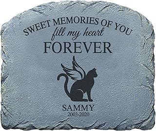 Let's Make Memories パーソナライズされたメモリアルガーデンストーン ペットメモリアル お悔やみガーデンストーン キャットメモリアル キャットガーデンストーン ペットの名前を刻印 長さ9 1/2インチ×幅11 1/2インチ×奥行1/2インチ
