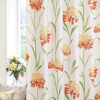 満天カーテン 【ZARA H&Mのデザイナーズ カーテン レースつき 4枚セット】 花柄 水彩調大人プリント カーテン 2枚と ミラーレースカーテン 2枚の 4枚セット 形状記憶加工 2級遮光 ヒヤシンスSET-オレンジ 幅100x丈200cm 4枚組