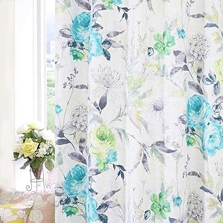 満天カーテン 【ZARA H&Mのデザイナーズ カーテン】 花柄 水彩調大人プリント カーテン 形状記憶加工 2級遮光 クロエ-シーグリーン 単品 幅200x丈95cm 1枚入