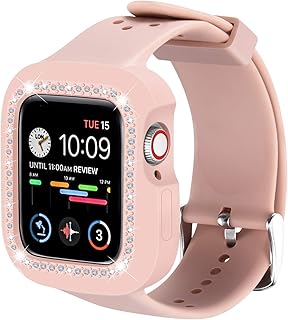 ZHMM Apple Watchバンド 40mm Iwatch対応 キラキラダイヤモンドケース Apple Watchソフトシリコン交換用スポーツバンド Apple Watch Series 6 5 4 SE ピンク