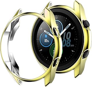 Samsung Galaxy Watch 3 45mm ケース ソフトケース【ELMK】全面保護 耐衝撃 柔らかい メッキ 脱着簡単 TPU ウオッチ 保護ケース 超薄型 カバー Galaxy Watch 3 45mm バンパー 対応(ゴールド)