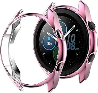 Samsung Galaxy Watch 3 41mm ケース ソフトケース【ELMK】全面保護 耐衝撃 柔らかい メッキ 脱着簡単 TPU ウオッチ 保護ケース 超薄型 カバー Galaxy Watch 3 41mm バンパー 対応(ピンク)