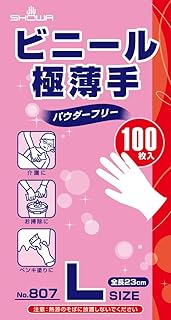 ショーワグローブ 【使い捨て手袋】No.807 ビニール極薄手(パウダーフリー) 100枚入 Lサイズ 1函