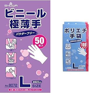 ショーワグローブ 【使いきり手袋】 No.8072 ビニール極薄手 50枚入 Lサイズ 1函 & 【食品衛生法適合】No826ポリエチ手袋100枚L【セット買い】