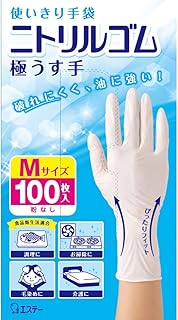 使いきり手袋 ニトリルゴム 極うす手 Mサイズ ホワイト 100枚 粉なし 左右両用タイプ 食品衛生法適合 調理 掃除 毛染め 介護 使い捨て