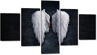 5パネル 天使の翼 絵画 プリント ウォールアート モダン抽象キャンバス ジークレーアートワーク 木製フレーム すぐに掛けられる リビングルーム装飾 幅70インチ x 高さ40インチ
