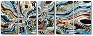 コンテンポラリーウォールアート カラフルなレインボーウェーブアートワーク - 大きな手作り ボーホー 抽象メタル装飾ウォールアート - モダンハンギング彫刻 5パネル すぐに掛けられる (高さ24 x 幅64)