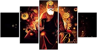 Guru Nanak dev ji 写真プリント キャンバス写真 フレーム付き グルナック ウォールアート 5パネル 絵画 ポスター フレーム 壁装飾 HDプリント ギャラリーラップ ストレッチ すぐに掛けられる(幅60インチ) x 高さ32インチ