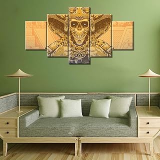ルームウォールピクチャー 古代マヤ蛇キング絵画 アズテカ族 定規 ポートレート アートワーク リビングルーム用 5パネル キャンバス ウォールアート ジークレー ポスター モダンインテリア 木製フレーム すぐに掛けられる(幅60インチ×高さ32インチ)