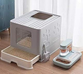 Pakeway 猫トイレ本体 猫用トイレ ツードア猫砂の飛び散り防止 掃除簡単 消臭・抗菌(グレー)