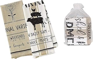 DII Design Imports ファームハウス キッチン ディッシュタオル - 2個セット ホワイト オーガンジーバッグ - 市場に行く