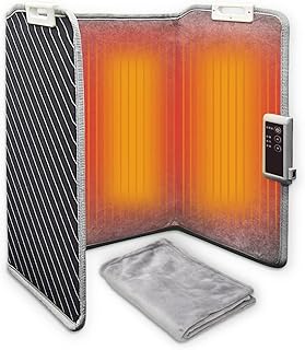 SURNEWS デスクヒーター 遠赤外線 パネルヒーター 折りたたみ 省エネ 足元ヒーター オフィス 暖房器具 安全装置 冷え対策 グレー 過熱保護 3段階温度調整 4時間タイマー付 毛布付