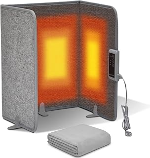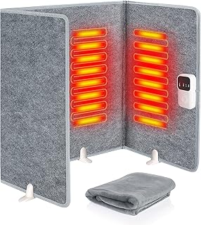 SURNEWS デスクヒーター 遠赤外線 パネルヒーター 折りたたみ 省エネ 足元ヒーター オフィス 暖房器具 安全装置 冷え対策 グレー 過熱保護 3段階温度調整 4時間タイマー付 毛布付